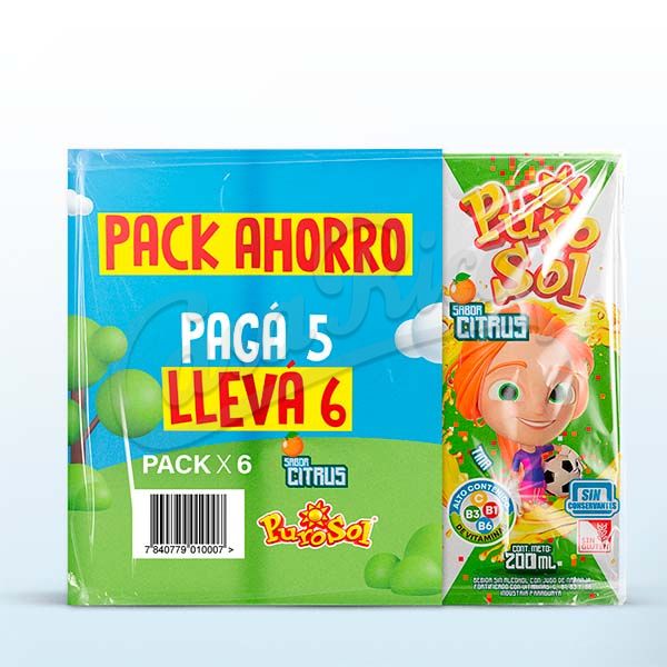 PACK DE JUGO PUROSOL CITRUS PAGUE 5 LLEVE 6 200ML